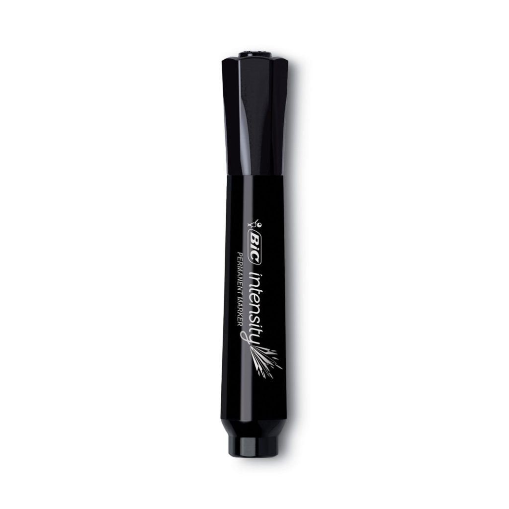 BIC Marking Chisel Tip Permanent Marker is a durable, tank-style permanent marker with long-lasting color. It wont dry out if the cap is left off for two weeks. Barrel features a soft grip for all day comfort. Vivid, fade-resistant ink marks on most hard-to-mark surfaces. Low-odor and acid-free. ACMI approved non-toxic. Value PackStock up and save! Marker Ink Type: Permanent; Marker Tip Type: Chisel; Marker Tip Size (text): Broad; Marker Color(s): Black.