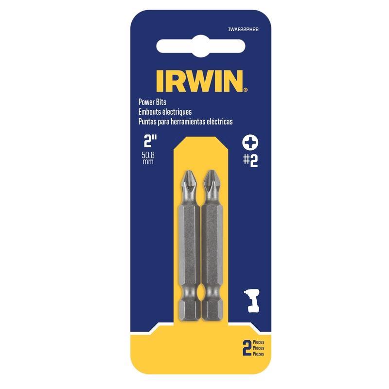 IRWIN IWAF22PH22 Power Bit, #2 Drive, Phillips Drive, 1/4 in Shank, Hex Shank, 1-15/16 in L, Steel