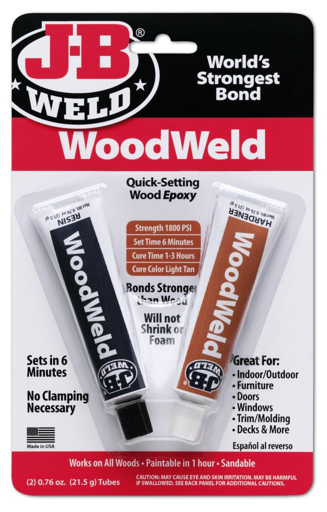 J-B Weld 8251 Woodweld Quick-Setting Wood Epoxy Adhesive – 1.52 Oz, 6/Pack