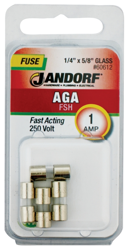 Jandorf 60612 Fast Acting Fuse, 1 A, 250 V, 35 A, 10 kA Interrupt, Glass Body