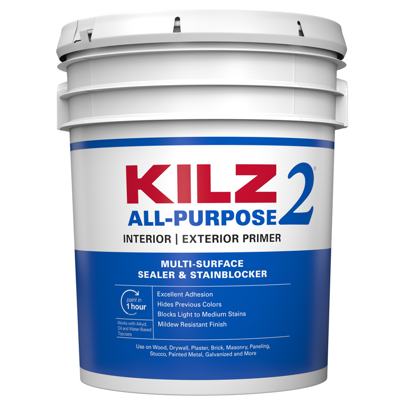 Kilz 2 Latex is a fast drying, water-base, multi-purpose primer sealer stain blocker that can be top coated with latex or oil-based paint. It has a very mild odor, which makes it an excellent choice for interior and exterior applications. Use on properly prepared interior and exterior surfaces, such as brick, painted metal, properly prepared glossy surfaces, drywall, paneling, stucco, masonry, plaster and wood.