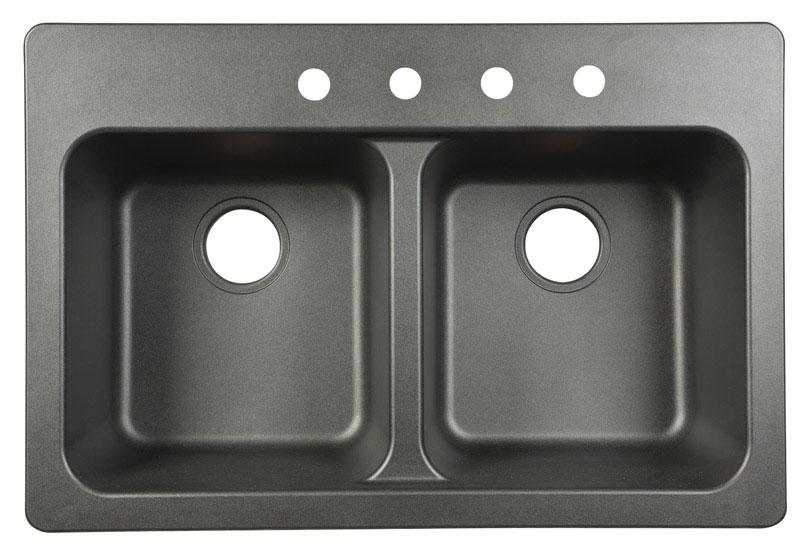 KINDRED FTB904BX Kitchen Sink, 4-Deck Hole, 33 in OAW, 22 in OAH, 9 in OAD, Tectonite, Black, Top Mo