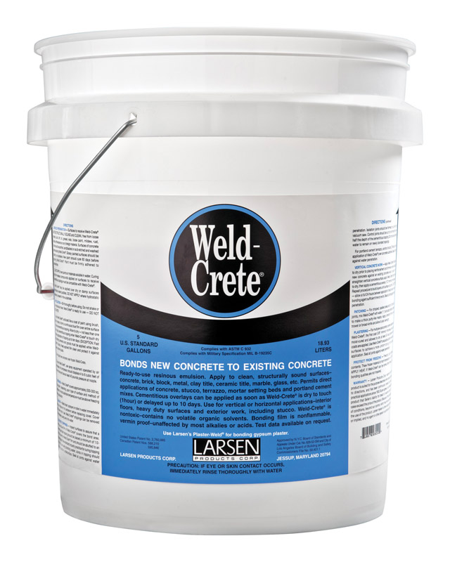 Larsen Weld-Crete WCP05 Bonding Agent, Liquid, Low to Slight Acetic, Blue, 5 gal Package, Pail