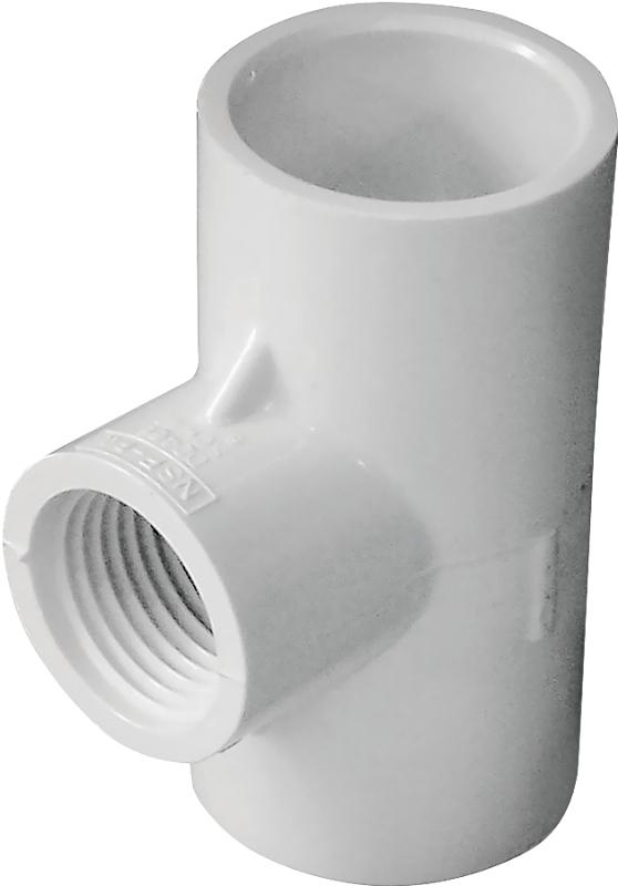 LASCO Reducing Tee, Nominal Size: 3/4 x 1/2 in, Slip x FPT Connection, 450 psi, Operating Temperature: 140 deg F, Schedule Rating: SCH 40, PVC, White