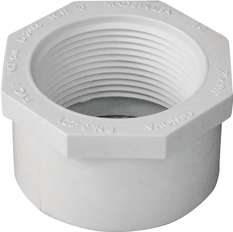 LASCO 438251BC Reducing Bush, 2 x 1-1/2 in, Spigot x FNPT, PVC, White, SCH 40 Schedule