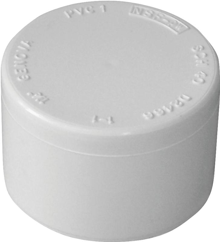 LASCO Pipe Cap, Nominal Size: 1/2 in, Slip Connection, 600 psi, Operating Temperature: 73 deg F, Schedule Rating: SCH 40, PVC, White, 1-3/16 in L