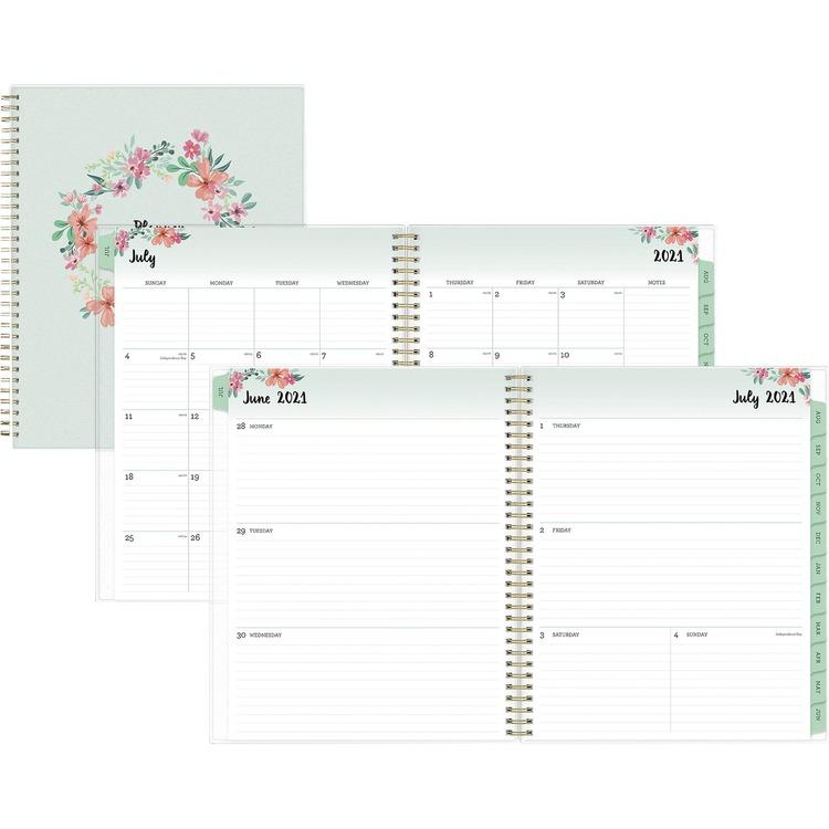 Laurel Academic Year Weekly/Monthly Planner, Floral Artwork, 11 x 8.5, Green/Pink Cover, 12-Month (J