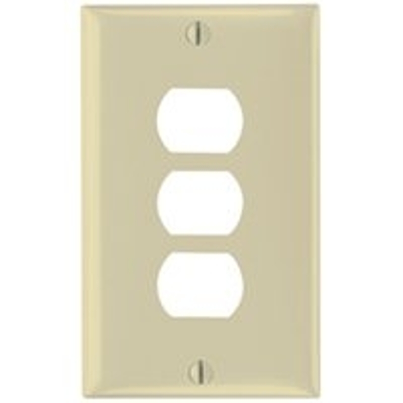 Switch plate with horizontal one opening, two opening and three opening sizes. Older style device with a rounded shape that is slightly flattened top and bottom. Interchangeable, supplied with mounting straps. Flexible, smaller than a standard duplex receptacle device, fits in a smaller opening. Used in locations with limited space or restricted options. Openings are 11/16 in H x 29/32 in W. UL listed, CSA certified.