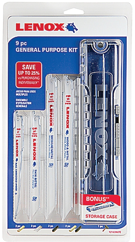 Lenox 121439KPE Reciprocating Saw Blade Kit, 9-Piece, Bi-Metal