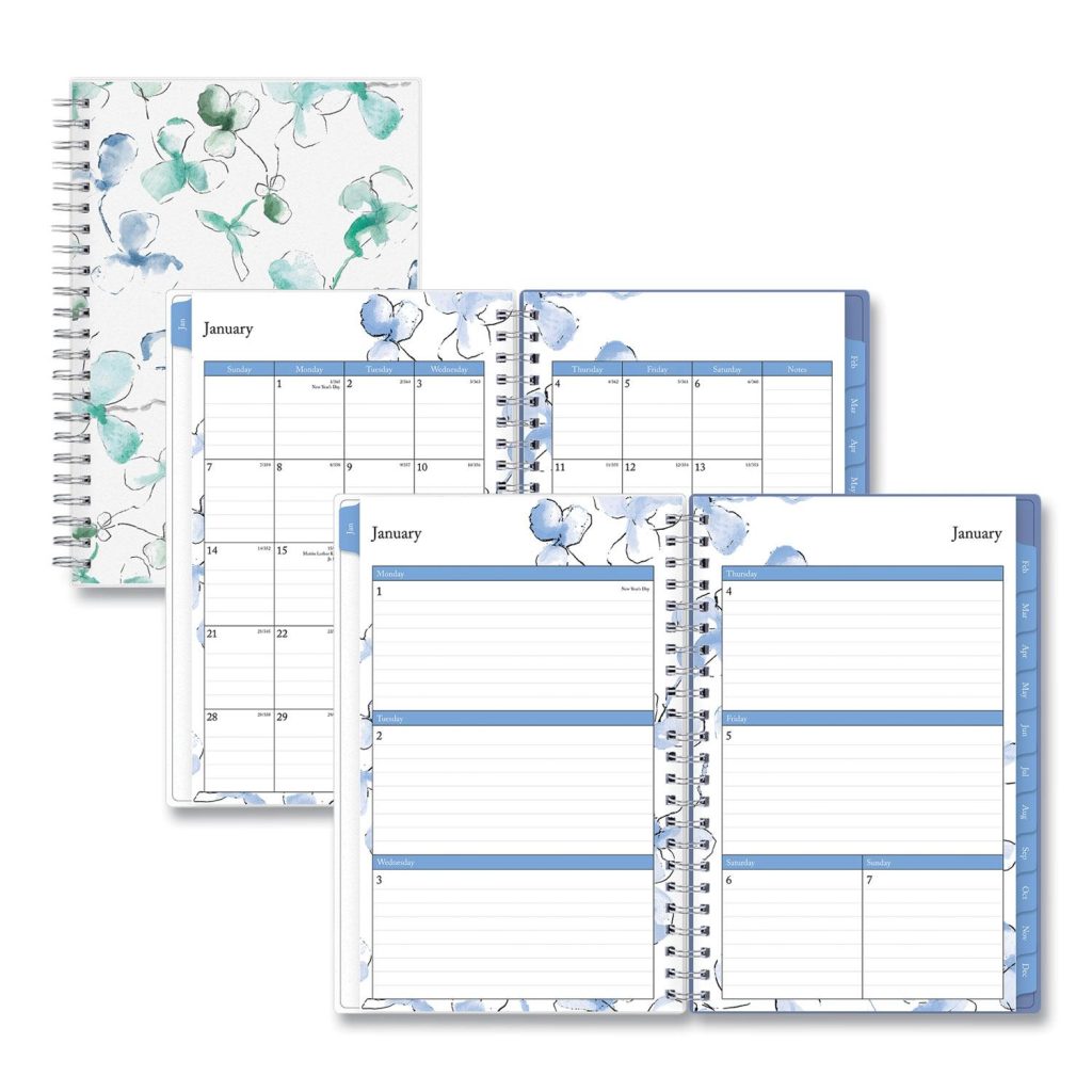 Add a touch of style to getting organized. Standard calendar year plus six bonus months of two-page spread per month. Weekly views per two-page spread offer ample writing space. Durable coated monthly calendar tabs allow for easy access to each month. Thick, premium acid-free pages reduce ink bleed-through. Features a clear interior double-sided storage pocket page. Durable frosted flexible front and solid back covers. Twin-wire binding finishes the look and offers easy page turning. Printed with soy-based ink on post-consumer recycled paper. Size: 8 x 5; Page Color/Theme: Lindley; Appointment Ruling: None; Edition Year: 2021.