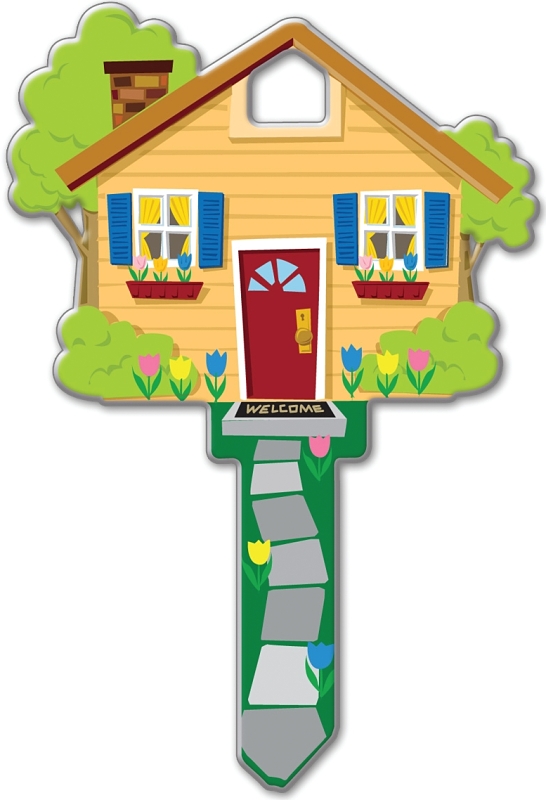 Lucky Line Key Shapes Key Blank, Design: House, Brass, Enamel, For: Schlage Locks