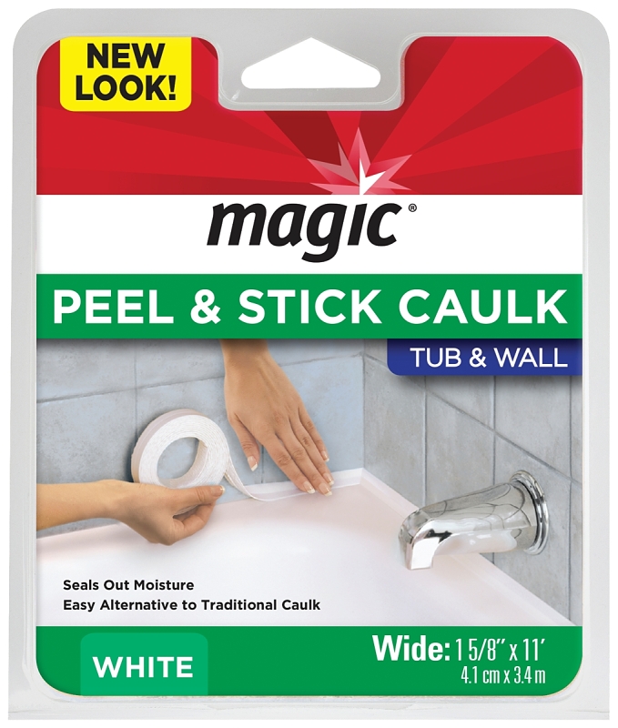 Re-caulking your tub and floor doesn’t have to be a pain with Magic tub and floor peel and stick caulk. It’s designed to provide a flush seal without the usual mess of caulking.