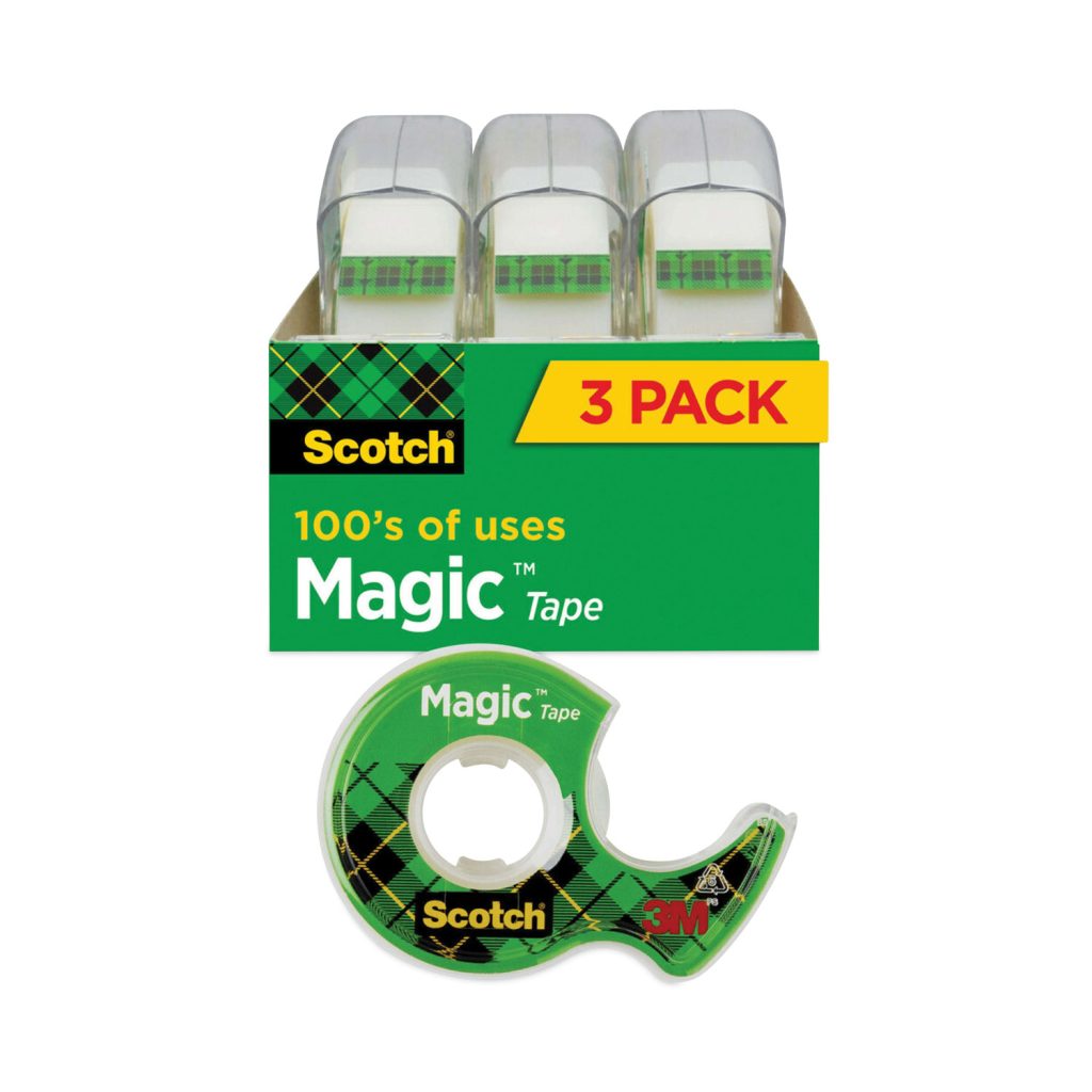 Magic Tape in Handheld Dispenser, 1″ Core, 0.75″ x 25 ft, Clear, 3/Pack