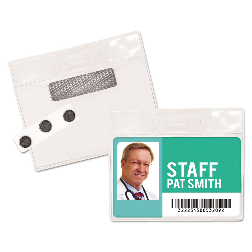Magnetic-Style Name Badge Kits, Horizontal, 4″ x 3″, Clear, 20/Pack
