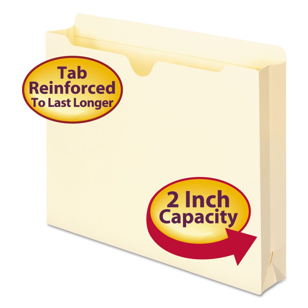 Great way to transport files out of the office. Closed sides keep papers secure. Straight cut tab. Thumb cut for easy access to documents. Back tab is 1/2″ higher than front for indexing. Reinforced Double-Ply Tab. Number of Sections: 1; Tab Cut: Straight; Size: Letter; Punched/Unpunched: Unpunched.