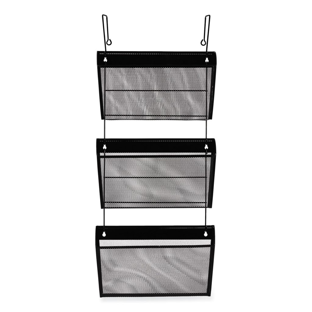 Keep important documents and files organized and at hand. Versatile design can be used one, two or three at a time. Mount on partition with unique hanging system (included). Contemporary style works with any office environment. Hanging File Systems Type: Multiple Pockets; For File Size: Letter; Overall Height: 8.5″; Width: 14.13″.