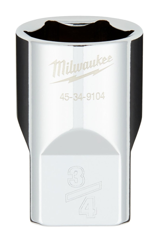Milwaukee 45-34-9104 Socket, 3/4 in Socket, 1/2 in Drive, 6-Point, Chrome Vanadium Steel, Chrome