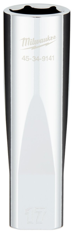 Milwaukee 45-34-9141 Socket, 17 mm Socket, 1/2 in Drive, 6-Point, Chrome Vanadium Steel, Chrome