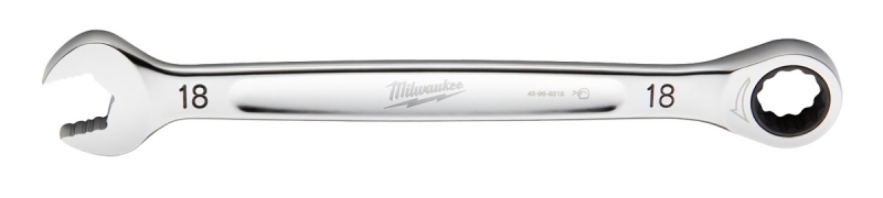 Milwaukee 45-96-9318 Ratcheting Combination Wrench, Metric, 18 mm Head, 9.55 in L, 12-Point, Steel, SKU M076-57355 MPN 45-96-9318 Add to Cart Add Comfortable I-beam handle design Specifications Manufacturer MILWAUKEE