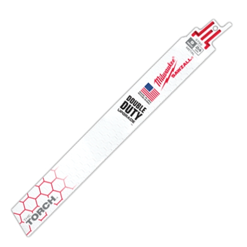 The Torch Metal-cutting blades with the Double Duty Upgrade feature a tooth form optimized for the longest life and maximum durability. Tough Neck is engineered to protect against tang breakage and delivers the strongest SAWZALL blade tang on the market. Grid Iron features a stamped honeycomb pattern throughout the body of the blade that greatly increases the rigidity of the blade, making it the stiffest metal cutting SAWZALL blade on the market. These blades are ideal for making tough, straight cuts.
