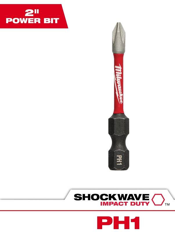 Milwaukee 48-32-4461 Power Bit, #1 Drive, Phillips Drive, 1/4 in Shank, Hex Shank, 2 in L, Proprieta