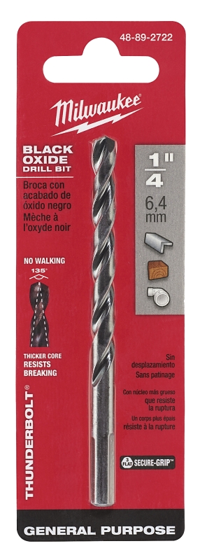 Milwaukee 48-89-2722 Jobber Drill Bit, 1/4 in Dia, 4 in OAL, Parabolic Flute, 3-Flute, 1/4 in Dia Sh