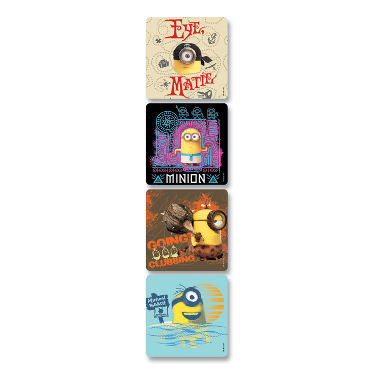 Each roll of stickers displays Minions featured in four different scenes. Perfect for rewarding students for a job well done. Illustration: Minions; Color(s): Assorted.