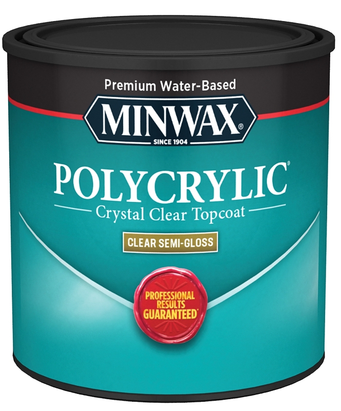 Minwax Polycrylic 244444444 Protective Finish Paint, Semi-Gloss, Liquid, Crystal Clear, 0.5 pt, Can