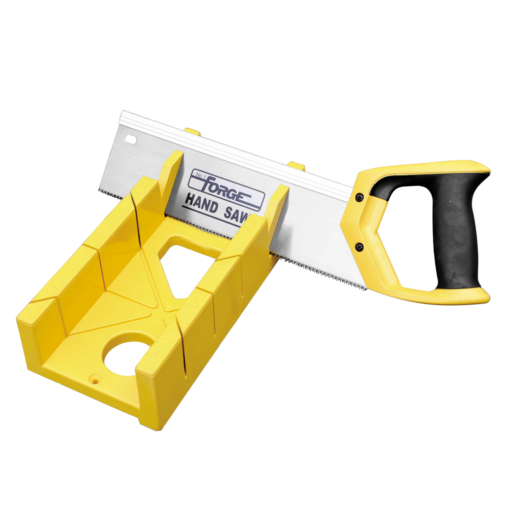 Cuts 45 degree left, 45 degree right, 90 degree, and 45 degree face angle, measure guide on side, cushion grip saw handle,diamond ground induction hardened teeth