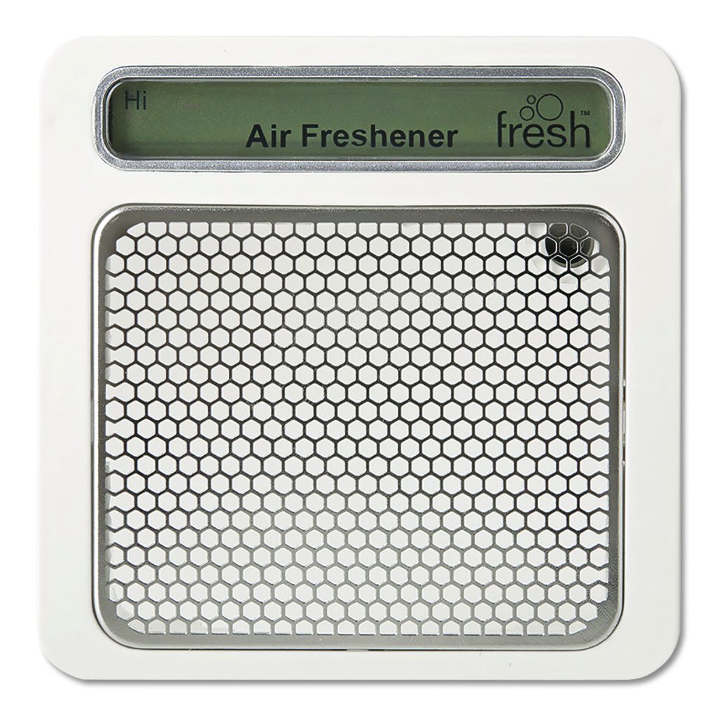 myfresh is a new, innovative product that delivers more targeted air freshening in small, personal spaces. Unlike traditional air fresheners with inefficient bursts of spray that overpower spaces, myfresh is motion-activated, releasing just the right amount of clean fragrance on-demand, right at the source. Our proprietary dry fragrance inserts emit a pleasant scent, powered by our small, high-velocity fan. myfresh reduces fragrance overload, nasal fatigue, and aerosol residue, for a better user experience. Material(s): Metal; Plastic; Color(s): White; Height: 3″; Width: 3″.