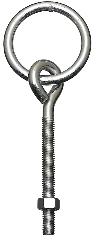Medium-weight hitching ring is designed for animal tie-downs and other home and farm applications. Includes 2 in ID ring #0 wire, welded. (0.3 Dia). Includes nut. 3/8 in eye bolt diameter. Boxed.