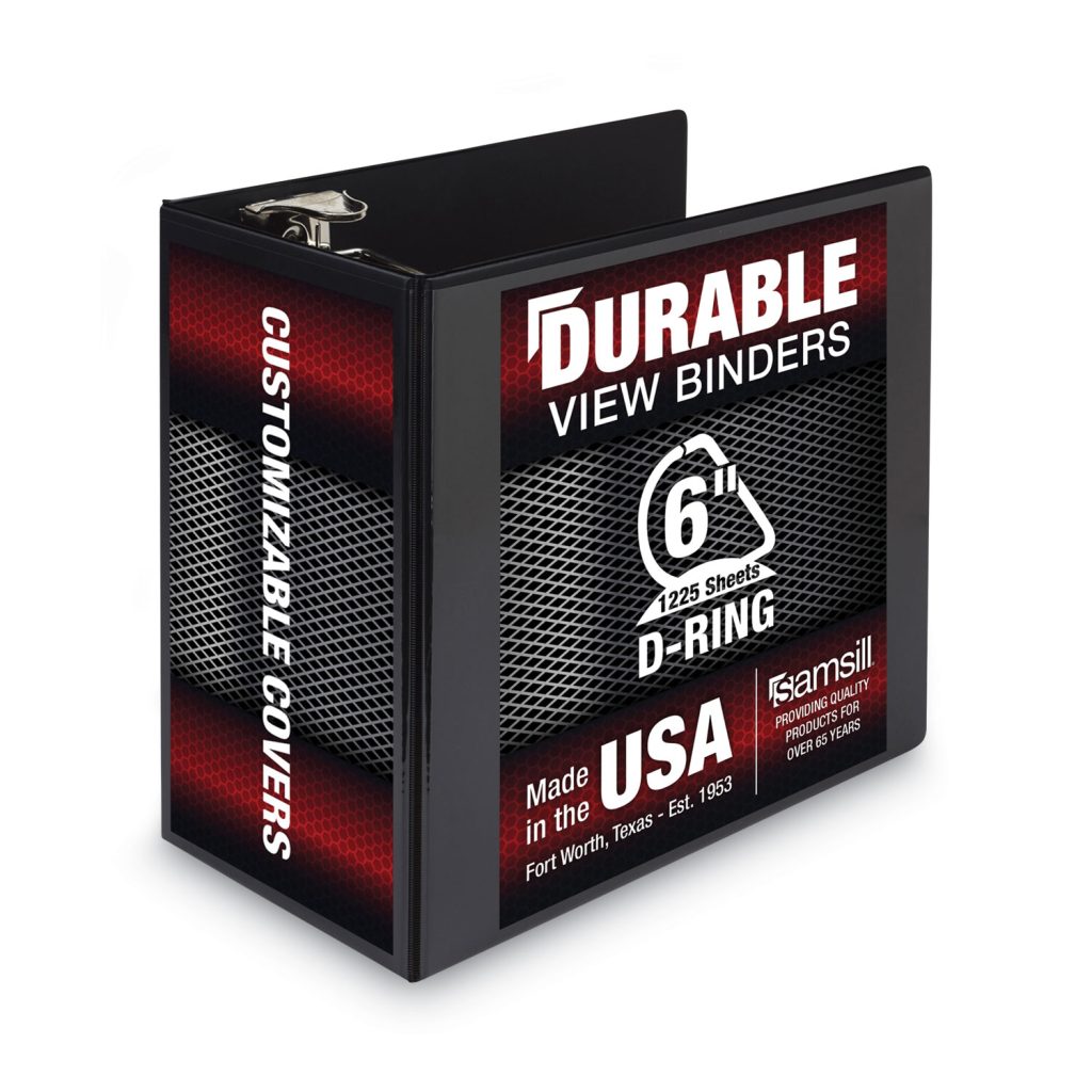 Besides storing documents, a binder is also an ever-present accomplice of office goers, students, and homeowners looking to be more productive and organized. These durable binders feature a clear overlay on the front, back, and spine giving full control and flexibility over customization of presentations, organizational projects, office reports, class projects, and more. Order multiple binders to create a custom reference system for weekly or monthly office reports, multiple classes at school, or other unique personal or professional projects. Binders are also non-stick, which prevents transfer of ink or lifting copy when materials are inserted in the cover or placed inside. This makes it easy to reuse and update the covers and spines as often as you’d like. Plastic is tightly sealed over rigid chipboard. Rings are mounted on the back lid which allows pages to lay flat and prevent wear and tear of the documents. Such a construction also adds to a sleek, clean appearance with no-rivet spine. Also includes two clear inside horizontal pockets for additional storage and organization of loose documents and non-punched papers. Each pocket provides enough space to hold notes, photos, business cards, or full-size pages that will be punched later. Perfect for school, office or even managing your personal documents at home. Binder Type: Ring; Binder Style: View; Binder Size Capacity: 6″; Binder Sheet Capacity: 1,250.