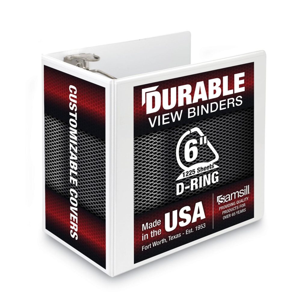 Besides storing documents, a binder is also an ever-present accomplice of office goers, students, and homeowners looking to be more productive and organized. These durable binders feature a clear overlay on the front, back, and spine giving full control and flexibility over customization of presentations, organizational projects, office reports, class projects, and more. Order multiple binders to create a custom reference system for weekly or monthly office reports, multiple classes at school, or other unique personal or professional projects. Binders are also non-stick, which prevents transfer of ink or lifting copy when materials are inserted in the cover or placed inside. This makes it easy to reuse and update the covers and spines as often as you’d like. Plastic is tightly sealed over rigid chipboard. Rings are mounted on the back lid which allows pages to lay flat and prevent wear and tear of the documents. Such a construction also adds to a sleek, clean appearance with no-rivet spine. Also includes two clear inside horizontal pockets for additional storage and organization of loose documents and non-punched papers. Each pocket provides enough space to hold notes, photos, business cards, or full-size pages that will be punched later. Perfect for school, office or even managing your personal documents at home. Binder Type: Ring; Binder Style: View; Binder Size Capacity: 6″; Binder Sheet Capacity: 1,250.