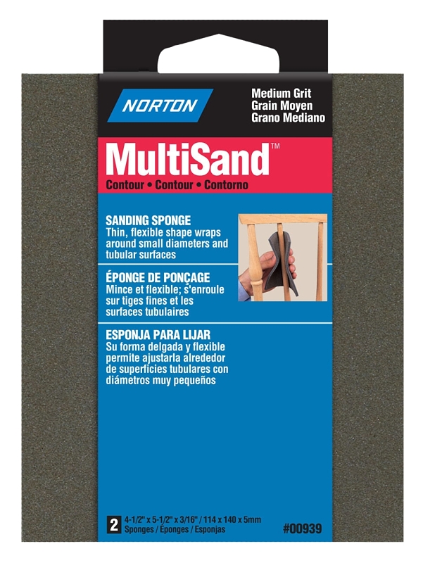 NORTON MultiSand 00939 Sanding Sponge, 5-1/2 in L, 4-1/2 in W, Medium, Aluminum Oxide Abrasive