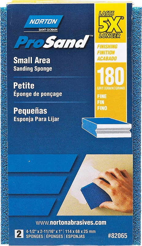 NORTON ProSand 82065 Sanding Sponge, 4-1/2 in L, 2-11/16 in W, 180 Grit, Very Fine, Aluminum Oxide A