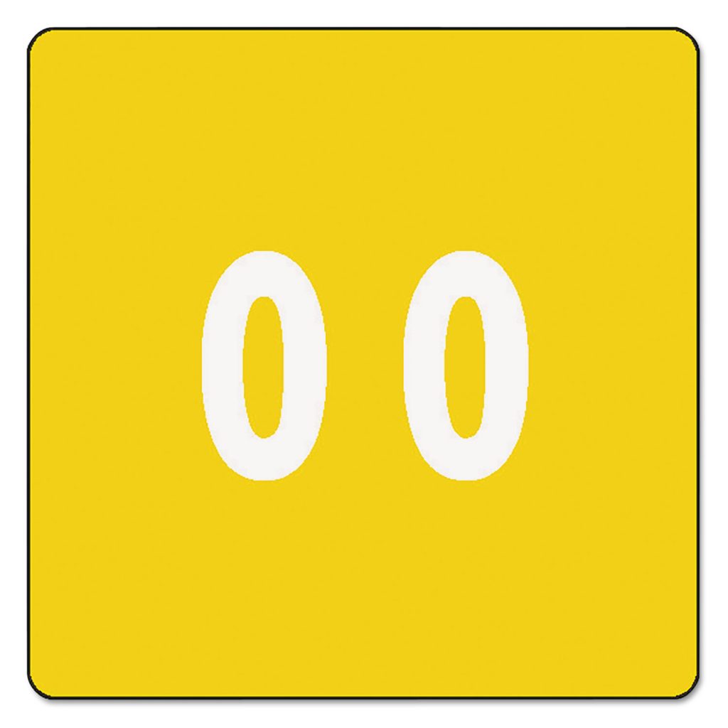 Numerical End Tab File Folder Labels, 0, 1.5 x 1.5, Yellow, 250/Roll