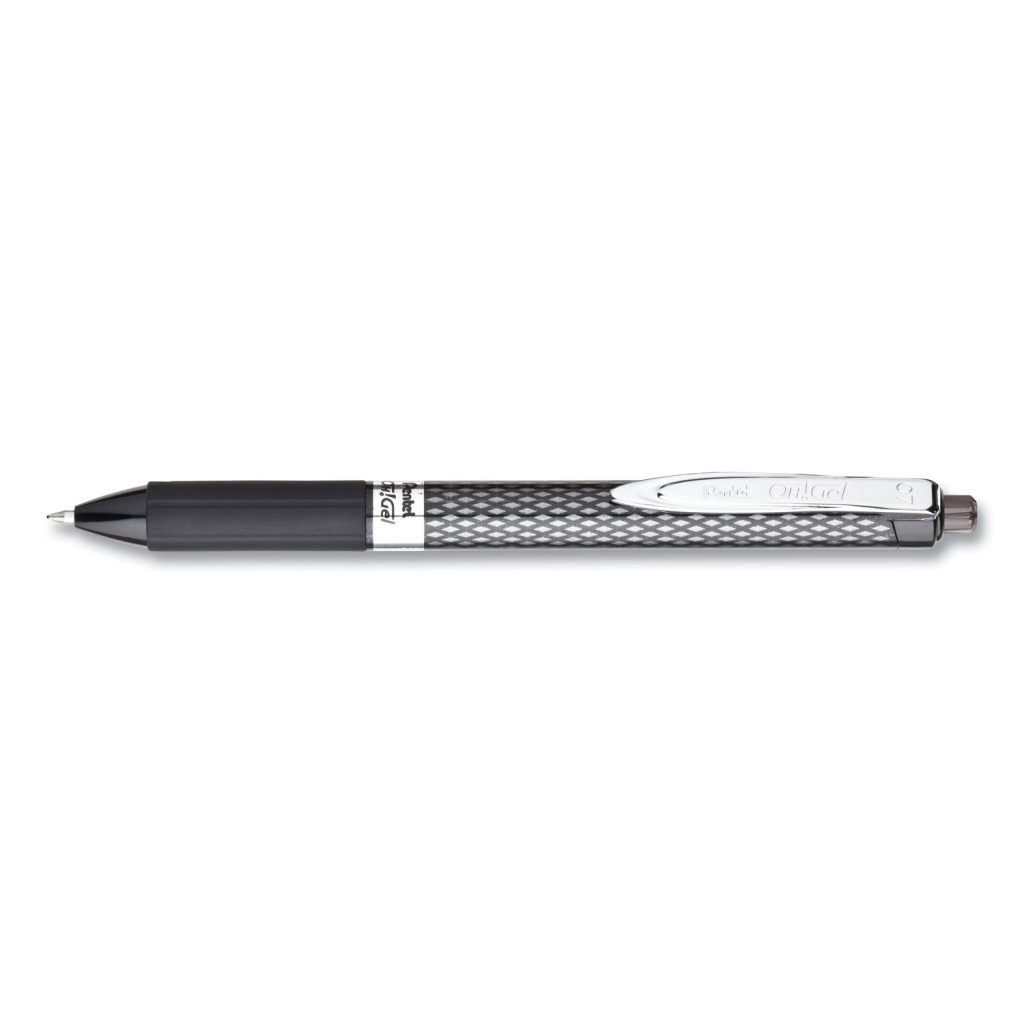 The Pentel Oh! Gel retractable gel pen features acid-free, permanent gel ink that delivers a memorably smooth writing experience. The latex-free grip provides extended comfort and control. Carbon fiber look gives this pen unique appeal. 0.7mm metal tip writes medium lines. Pen Sub-Brand & SKU Line: Oh! Gel; Pen Style: Retractable; Pen Type: Gel Pen; Refillable (Yes/No): No.