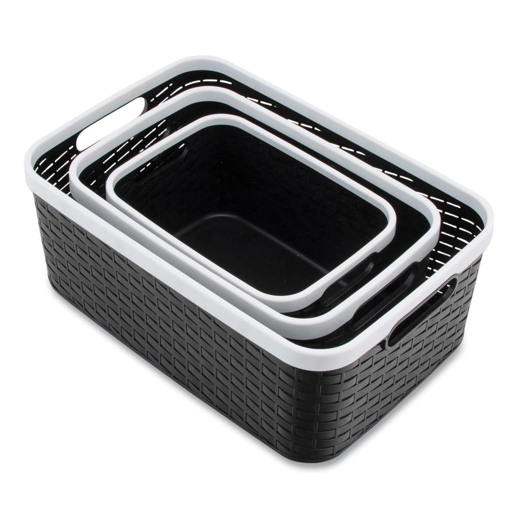 Open Lid Storage Bin, Assorted Sizes, Black/White, 3/Pack