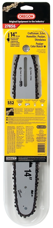 This 14 in guide bar and chain combination features a 3/8 in low-profile chain that is ideal for homeowners and occasional users who want a low-vibration, low-kickback saw chain. The chamfer chisel cutters offer outstanding performance and are durable, easy to maintain and forgiving.