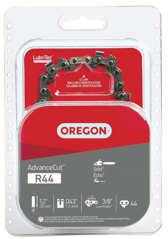 The Oregon R44 AdvanceCut saw chain is ideal for landscapers and homeowners using small, low powered saws, because it offers higher chain efficiency. The 0.043 in ga narrow kerf cutting systems increase efficiency since they need less power from the saw than standard cutting systems.