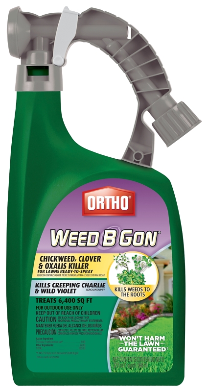 Ortho Weed B Gon chickweed, clover and oxalis killer for lawns ready-to-spray is formulated to kill tough weeds in your lawn. The formula kills ground ivy (creeping Charlie), speedwell (veronica), wild violet and other tough lawn weeds as listed. Plus, the spray won’t harm your lawn-guaranteed. No mixing and no measuring is needed. Just spray and go.