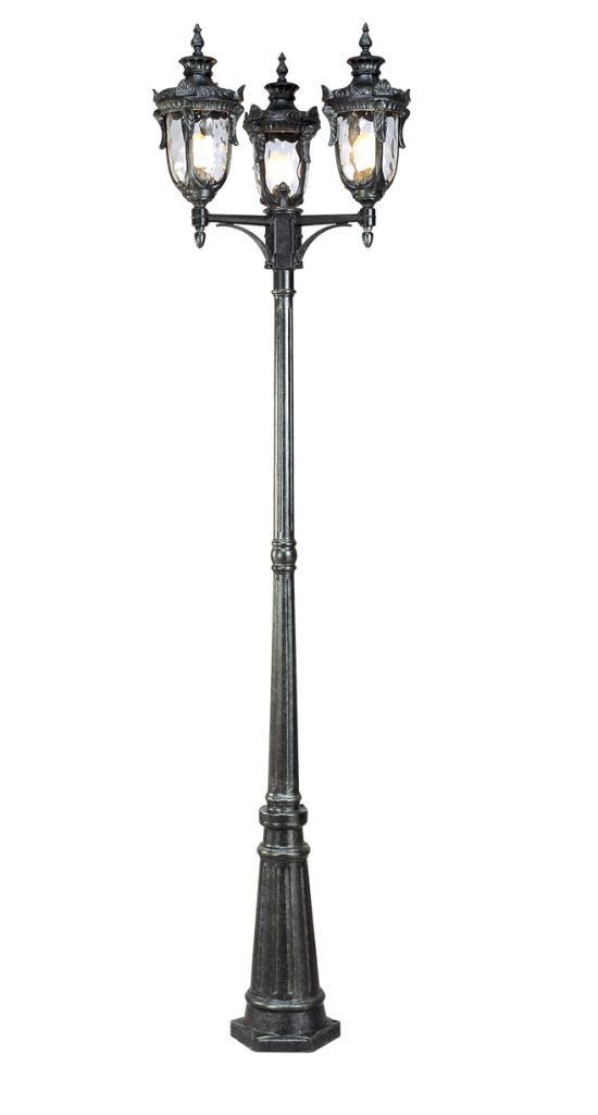 Outdoor Triple Lamp Post Antique Bronze Champagne Water Glass, 8.5″ x 8.5″ x 90″