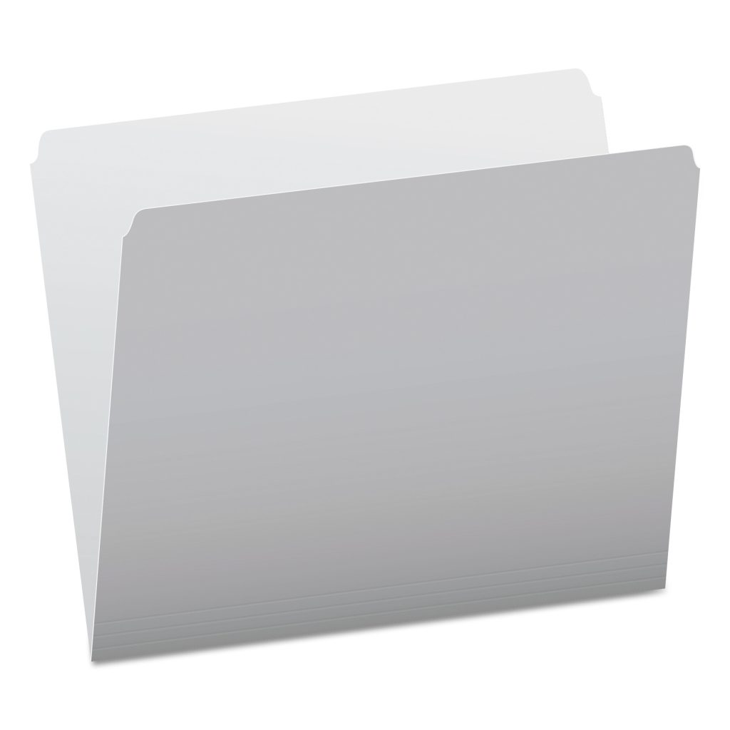 Pendaflex Straight Cut Colored File Folders – Letter – 8 1/2″ x 11″ Sheet Size – 11 pt. Folder Thickness – Gray – Recycled – 100 / Box| File folders feature straight-cut tabs and a two-tone design. Bright exterior color with lighter shade interior reduces misfiling. Each tab is single-ply. Folders are made of 11 point, acid-free stock.File folders feature straight-cut tabs and a two-tone design. Bright exterior color with lighter shade interior reduces misfiling. Each tab is single-ply. Folders are made of 11 point, acid-free stock.