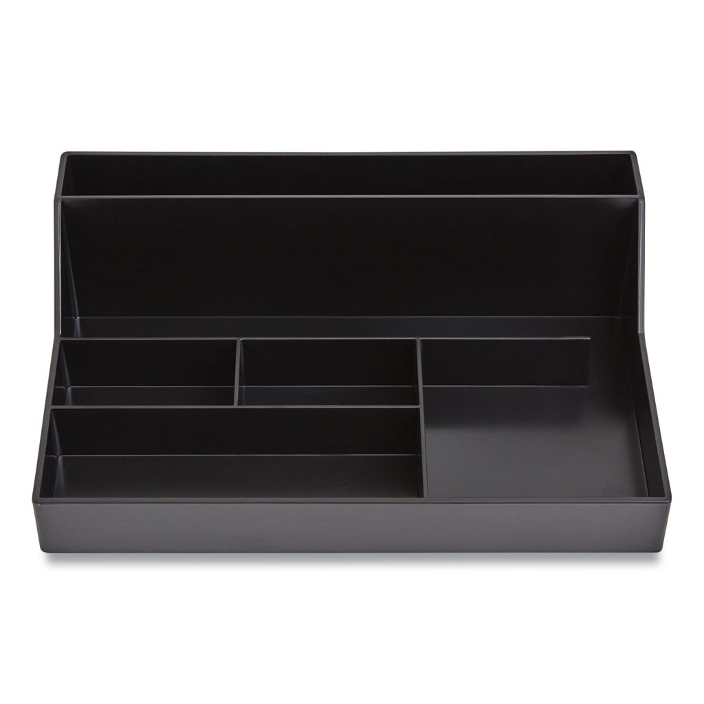 Plastic Desktop Organizer, 6 Compartments, 6.81 x 9.84 x 2.75, Black