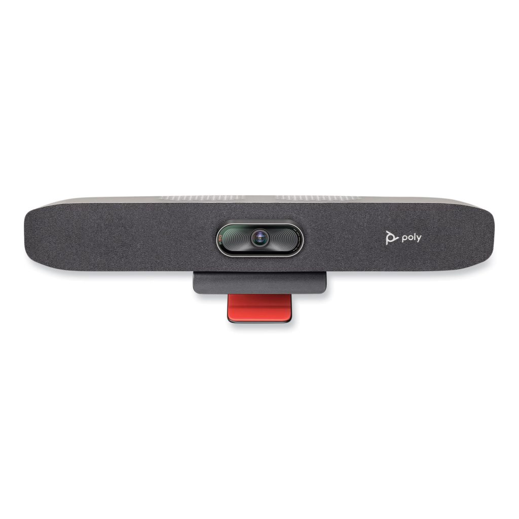 The Poly Studio R30 USB video bar’s dynamic camera experience ensures users are seen clearly with pinpoint, accurate automatic framing and tracking with Poly DirectorAI making meetings easier and more inclusive. Plus, NoiseBlockAI and Acoustic Fence technologies prevent background noise from disrupting the conversation. IT managers will appreciate how easy this plug-and-play video bar is to set up, manage, and deploy and with cloud-based Poly Lens management functionality, it’s a hassle-free experience. Resolution: 1920 pixels x 1080 pixels; Color(s): Black; Power Source(s): DC Power Supply; USB; Microphone: Yes.