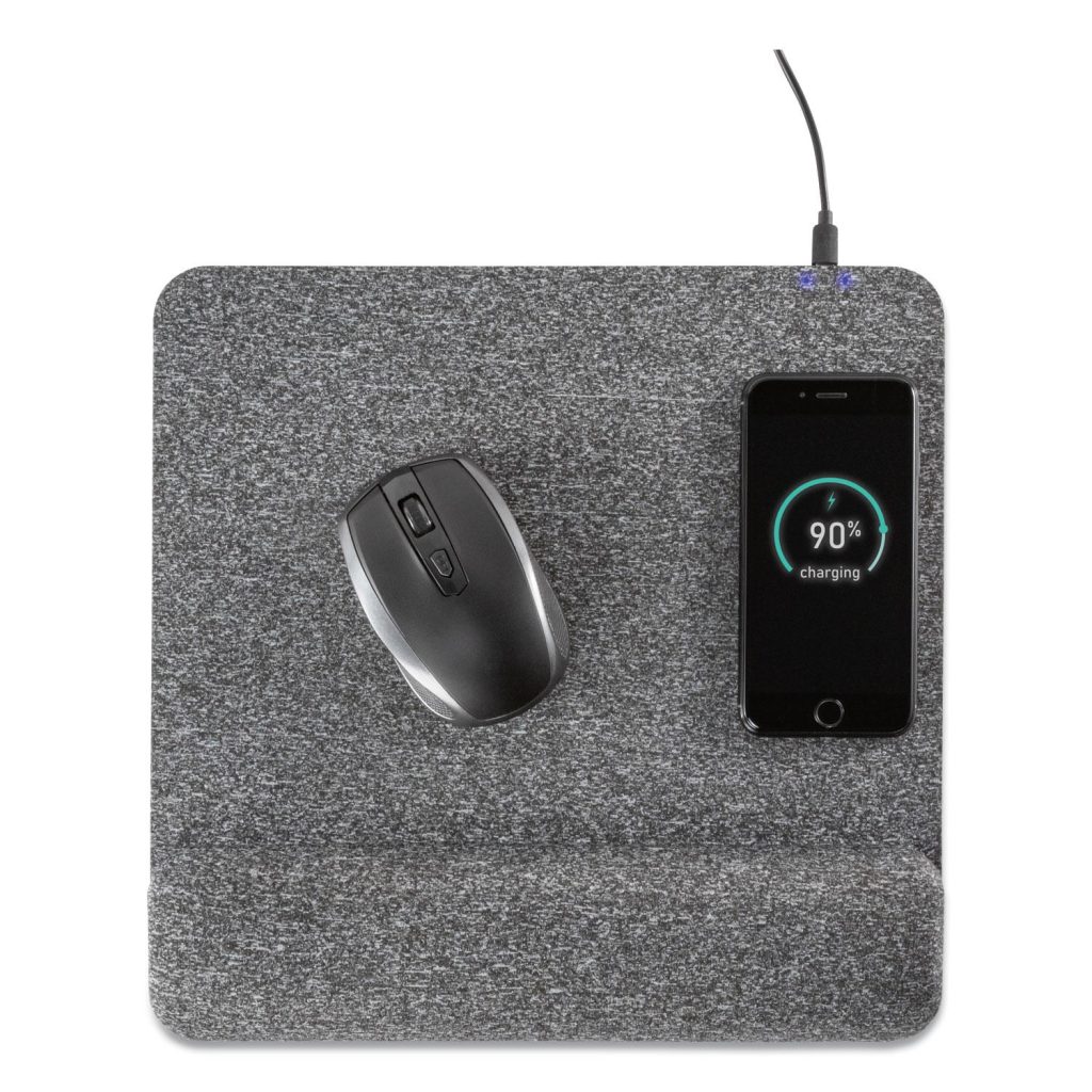 Powertrack Plush Wireless Charging Mouse Pad with Wrist Rest, 11.8 x 11.6, Gray