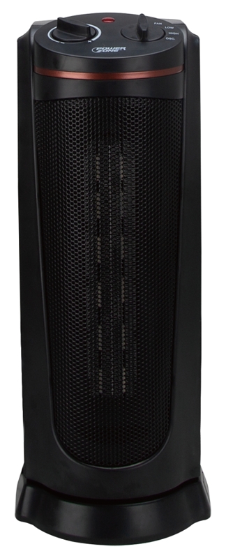 PowerZone Ceramic Tower Heater, 12.5 A, 120 V, 900/1500 W, 1500W Heating, 2-Heat Settings, Black