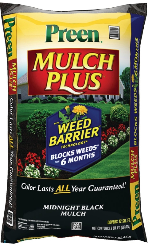 Preen 95456138 Mulch Plus Weed Barrier Bag, Granular, Midnight Black, Bag
