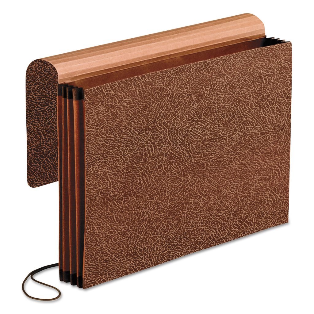 Cross-bonded, rip-proof top side and bottom expansion gussets provide extra-long-lasting durability. Red fiber material features a protective, moisture-resistant coating. Elastic-cord closure keeps documents secure in transit. Expandable File Folder Type: Elastic Cord Closure Wallet; Size: Legal.