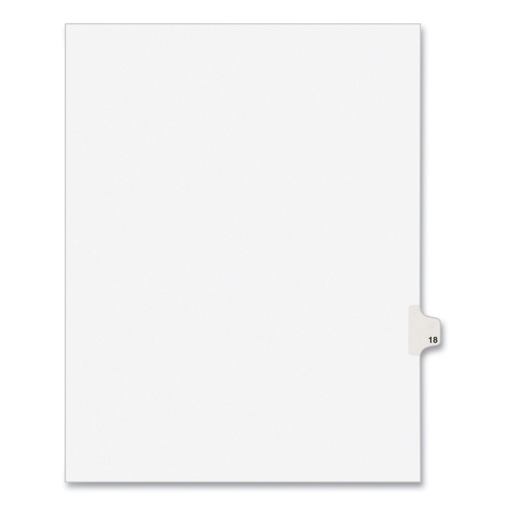 Preprinted Legal Exhibit Side Tab Index Dividers, Avery Style, 10-Tab, 18, 11 x 8.5, White, 25/Pack,